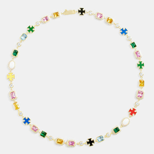 Herzförmige bunte Halskette mit synthetischem Zirkon